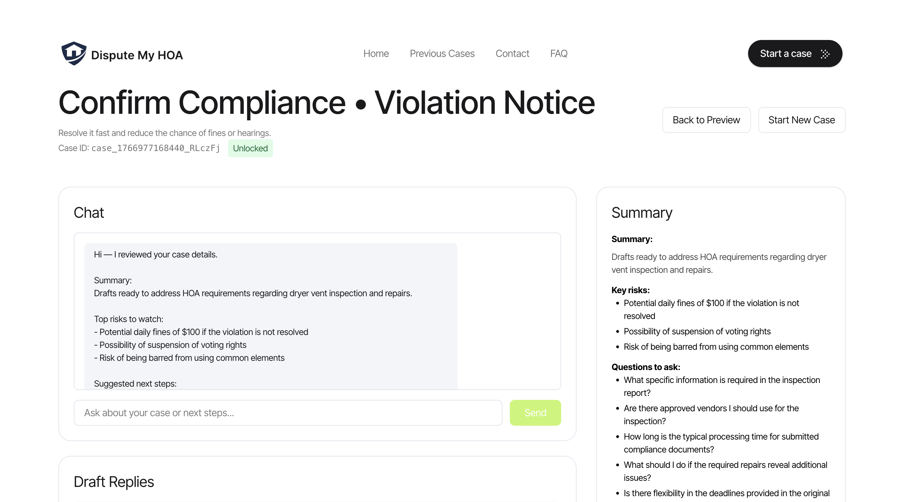 Preview how we'd respond to your violation - see the professional tone before unlocking